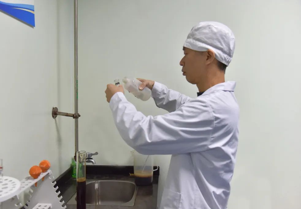 每天的原辅料复核、配料定容、密度检测、PH值检验、性状分析、产品外观鉴别等,一批次下来多达60多项的指标检验,形成生产记录,出具检验报告……这些在外人看来琐碎而平凡的工作,却是阿国的常态,更是公司执行GMP管理的必须。
