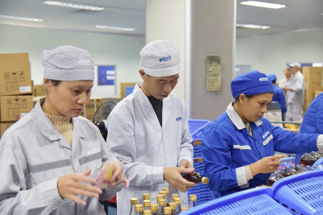 7:50配料开始,8:50灌装间机器声响起,9:00洗瓶间人员已经忙碌而有条不紊工作起来,待前端各工序正常运行后,他又往包装区域巡场,“阿娇,这张产品合格证印得不太清楚,换一张吧。”“两个批号不一样的,阿炳你搬箱时注意一下。”“新人初来乍到,对于包装不熟手很正常,产品需要多抽检,新人亦要多提醒。”多年的工作经验,让他在巡检中准确快速地根据当前状态捕捉到质量控制关键点。