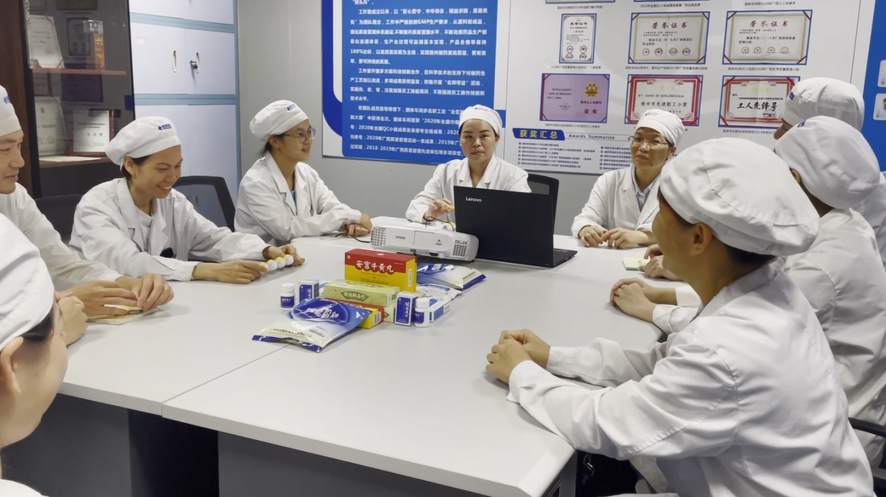 固体车间主要生产品种中华跌打丸是sunbet申搏起家品种,由少林跌打药方“急性子散”为基础方,经数代制药人多次调整组方和研究开发而成的传统中药品种,其制作技艺入选梧州市级非物质文化遗产。雷洁萍作为该老字号产品的第五代传承人,不忘前辈初心,传承精华,守正创新,创立以个人命名的劳模工匠人才创新工作室,担纲技术带头人,致力于保护、传承和发展传统中药制作文化,一师多徒实施传、帮、带,为企业培养后备人才,立志要把中医药这一祖先留下的宝贵财富继承好、发展好、利用好,为加快推进中医药现代化、产业化再立新功。