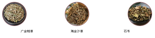 方中重用广金钱草、海金沙草、石韦利湿通淋,为方中君药。