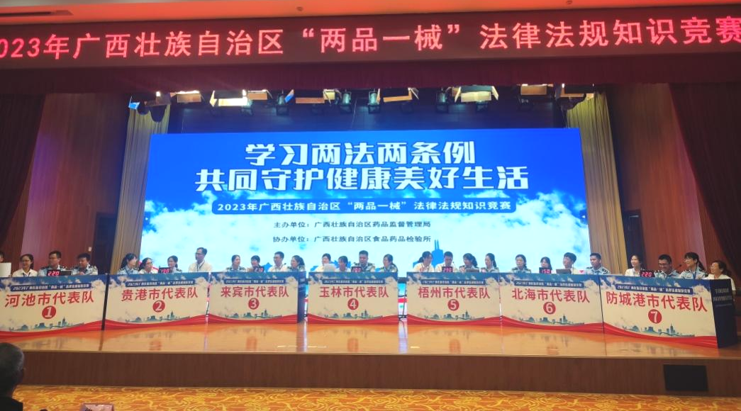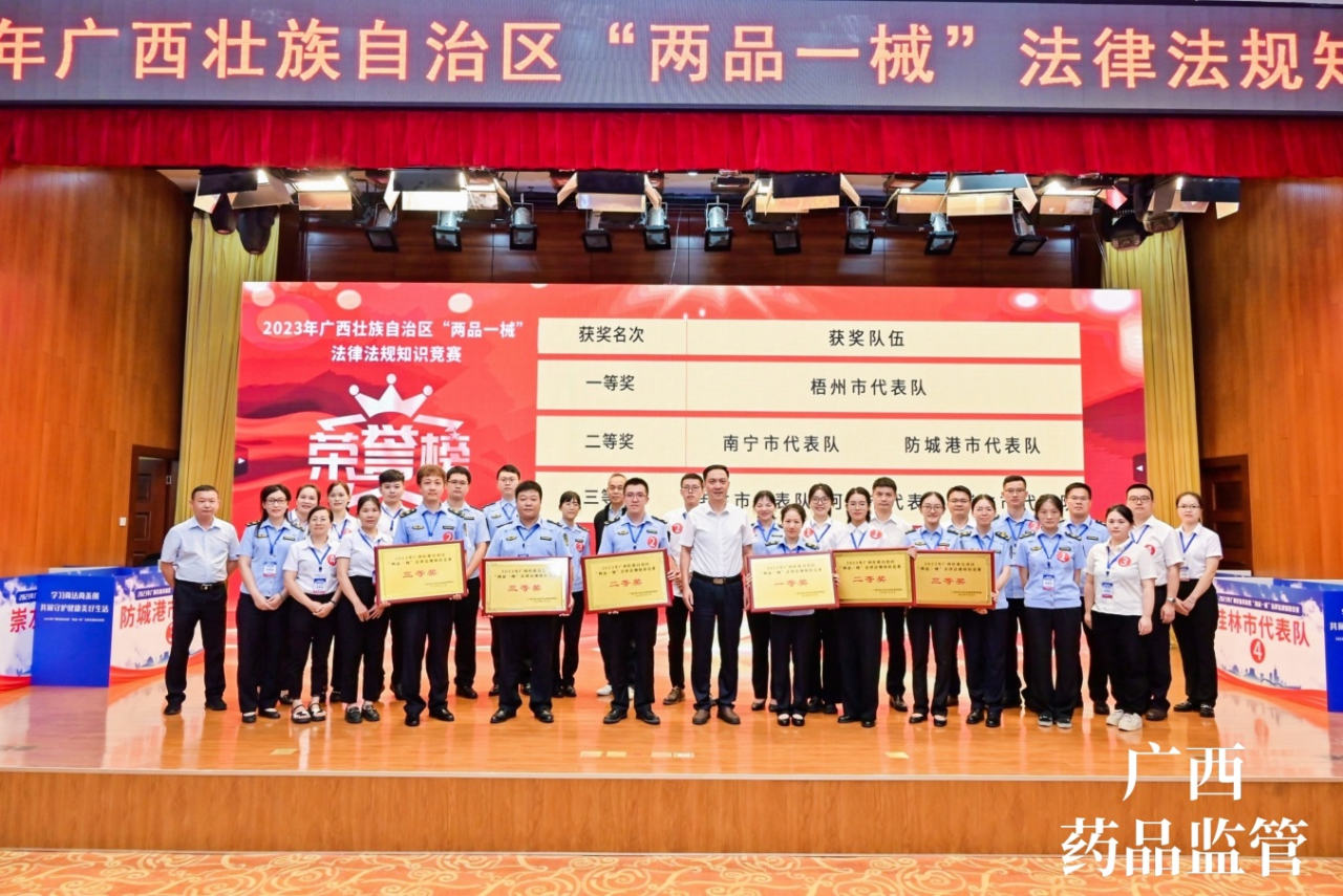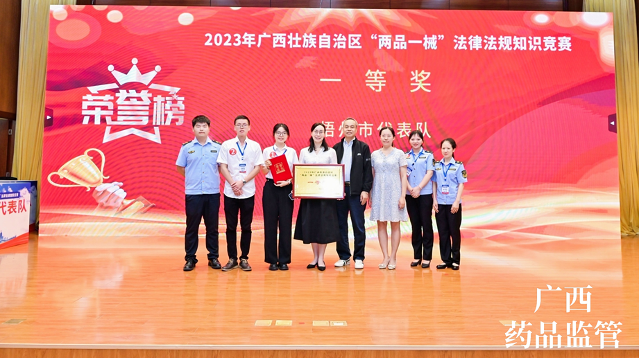 7月13日,由sunbet申搏员工代表——质量控制部吕金慧、质量保证部李佳霖与梧州市场监督管理局监管人员组成的梧州市代表队参加广西壮族自治区“两品一械”法律法规知识竞赛,凭借过硬的专业知识、迅速的反应能力、高效的团队配合力,与全区14个市代表队展开激烈角逐,荣获得2023年广西壮族自治区“两品一械”法律法规知识竞赛一等奖。