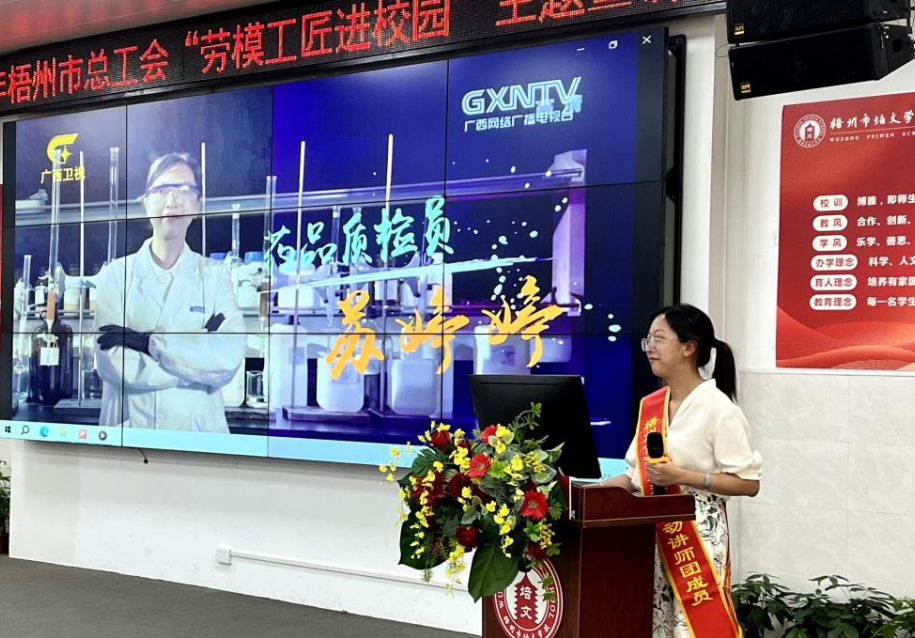本次由梧州市总工会、梧州市教育局主办的“劳模工匠进校园”主题宣讲,为劳模和学子之间搭建了一座近距离沟通的桥梁,让广大学子们通过倾听工匠故事,感受工匠精神,激励青年一代奋发图强,向劳模学习、向工匠看齐。宣讲会上,“广西五一奖章”“广西工匠”获得者苏婷婷围绕“要有积极向上的人生态度、要有持之以恒的学习精神、要有不畏艰辛的刻苦干劲”三个方面向在场师生们分享自己从学生生涯到工作时期二十多年的成长历程和故事。