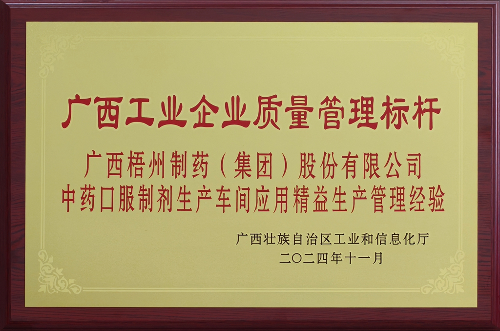 广西工业企业质量管理标杆(中药口服制剂生产车间应用精益生产管理经验)